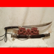 商品介绍:此极品大明护卫腰刀为户撒刀名匠杨茂芳全手工精心打制,刀匠制作工艺精湛,处理手法细腻,此刀刀型为大明护卫腰刀造型,长短适中,刀条精挑军用弹簧钢纯手工千锤百炼而成,独到配方淬火,宝刀鼎成,刀条刚柔相济,粗锋砍铁不伤, 细锋轻松过竹子,性能极佳,刀柄采用最为结实耐用的全龙骨制式,并尾端手工加钢,在野外还可当敲击使用!刀柄刀鞘精选缅甸黑酸枝,防开裂性极佳!刀鞘不仅手工包缅银,另加以最结实耐用的纯手工经缠棕丝,使得刀鞘更加坚固耐用。精良制作!此刀手感极好,欢迎大家选购!