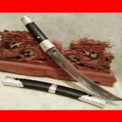 工艺特点:线乔发走铜工艺 小马刀造型 黑檀木缅银刀装 传统户撒刀锻打工艺 名匠线乔发制作 配方淬火