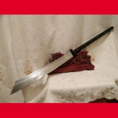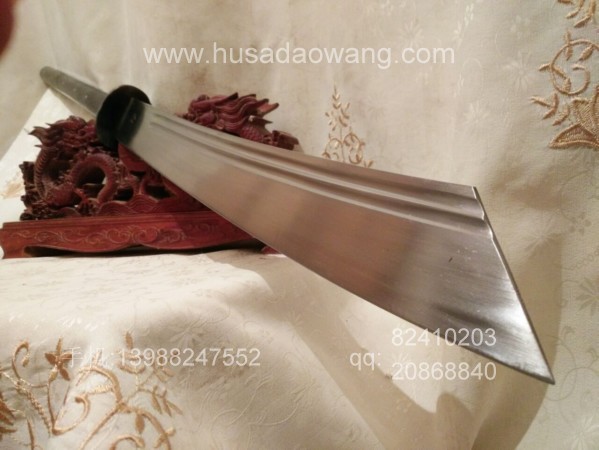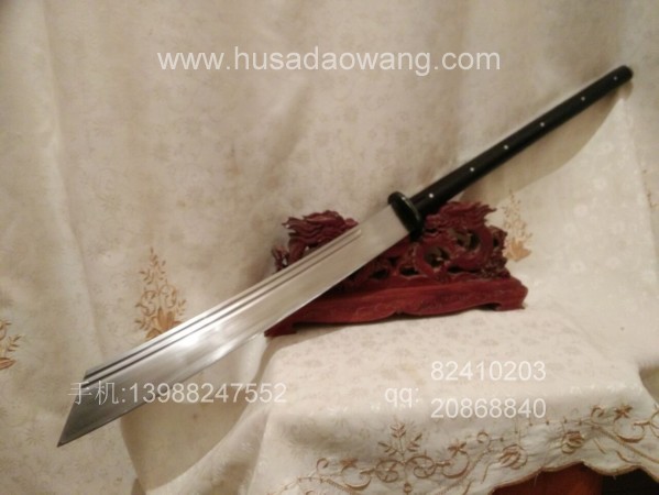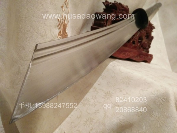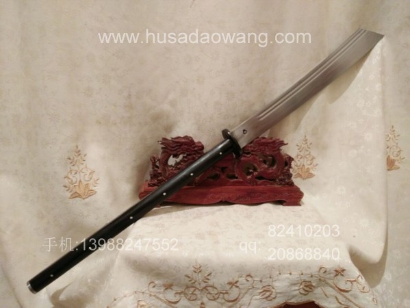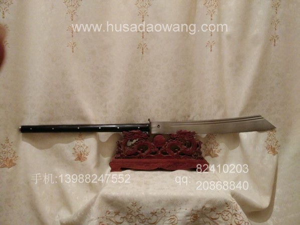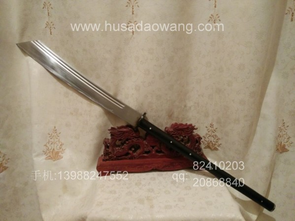 商品介绍: 此刀为户撒优秀刀匠纯手工锻打刀身,刀身采用军用车弹簧板全手工锻打,刀型为传统军用斩马刀刀型,刀型威猛霸气,超长一体龙骨刀身,刃口反复锻打后配方淬火而成,坚硬锋利,粗锋砍铁不伤,细锋轻松过竹,刀柄与刀身一体龙骨制作结实耐用,刀柄尾端手工加钢锭,在户外可做锤击使用,独家设计!刀鞘为上等牛皮纯手工缝制,刀柄加非洲黑檀木或者缅甸黑酸枝,高端大气!此刀手柄长,练武户外皆可,受广大武术爱好者青睐!