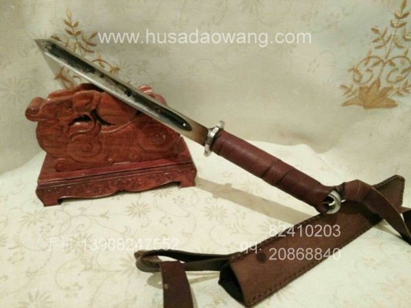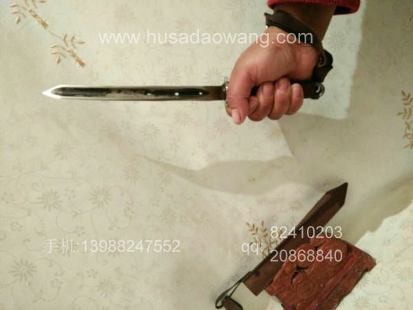 宝刀介绍:此刀采用火车粗弹簧纯手工锻制,此种刀型多为处理战俘使用,此种设计凌厉刀型让人不寒而栗!三面螺旋开槽!铁皮桶一穿而过!水泥地也能凿穿,整体一体制作,异常结实耐用,此刀从开始锻打实验,先后经历数月时间才至成熟,定做工期20天!