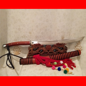 商品介绍:此刀由本站投资商独家进口的高档进口钢材纯手工锻打而成,相对于其他钢材,此种钢材硬度和防锈能力更为提高,可以达到刮毛而砍铁不伤的性能指标,因钢材硬锻打难度和特殊淬火技术要求更高,因此产量有限,此刀经典民族款苗刀造型,刀身流畅美观,刀条一体全龙骨设计,坚固耐用!尾端手工加钢,户外可做敲击使用,刀条特殊锻制千锤百炼而成,刃口坚硬,防锈能力出众,手感一流!刀鞘刀柄精选缅甸老红酸枝,外缠综丝而成,民族风格浓郁!大家抓紧时间订购。