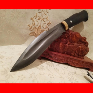 工艺特点:刃材为特硬百炼花纹钢 刀柄材料为非洲黑檀 刀鞘牛皮 挡手野生鹿角切片
