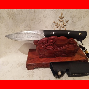户撒刀简介: 此刀为户撒优秀工匠全手工锻打而成,刃材采用百炼花纹钢反复锻打后户撒传统配方热处理而成,刀身花纹绚丽,刃口经过锻打和淬火后更加致密,硬度大大提高,全龙骨刀身解释耐用,此刀经过匠人多道手工打磨后极为锋利,可以轻松刮毛,刀鞘采用牛皮手工缝制,刀柄为优质非洲黑檀手工制作,手感舒适握感极佳!此刀小巧便携,随身皮包都可携带,防身利器!
