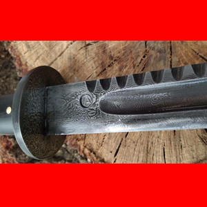 商品简介:此刀为被列为省级户撒刀锻打工艺省级传人的著名刀匠杨茂方亲手锻打而成,刀条采用特硬百炼花纹钢全手工千锤百炼后经过配方淬火而成,刀条刚柔相济可以轻松过竹砍铁不伤刃口,刀条设计独特,刀背手工雕刻有凹凸槽,更增加了刀的粗犷美观和抗造能力!刀柄采用大块野生鹿角和牛角贴片制作,美观而耐用,手感非常好!刀柄尾端也有尾铁,以防刀柄撞地而遭到损坏,整体设计粗矿强悍,让人眼前一亮!刀鞘采用优质红酸枝手工制作而成,美观大气!经典收藏,不可错过!