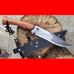 商品简介:此刀精选特硬高碳锰钢由户撒优秀锻打全手工锻造而成,刀身千锤百炼后匠人独特配方淬火而成,此刀性能卓越,刚柔相济,刃口粗锋砍铁不伤,细锋轻松刮毛!刀体采用世界大名鼎鼎的博依刀外形,此刀配重极好,手感舒适,因此劈砍相当有力!户外穿刺能力也极强,因此这款刀拥有众多狂热刀迷得追捧,更获得了户外驴友非常青睐。此刀手柄采用优质红酸枝贴片,防开裂性能极佳,手感舒适!刀鞘采用牛皮刀鞘(独家设置防潮夹层)。480元!欢迎大家来电或者微信咨询详谈!微信13988247552