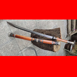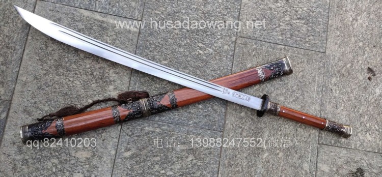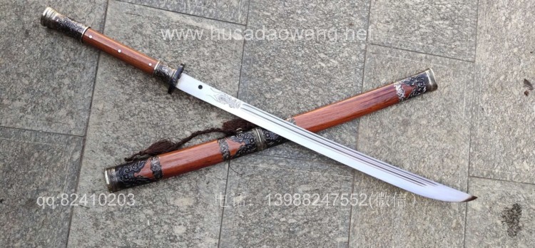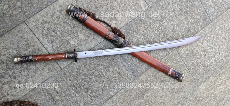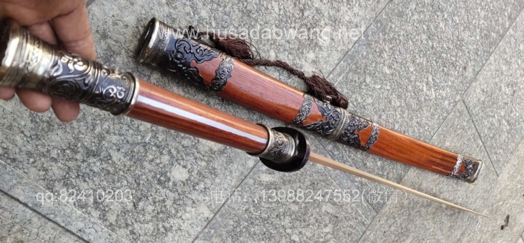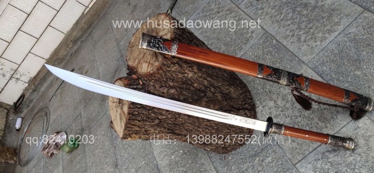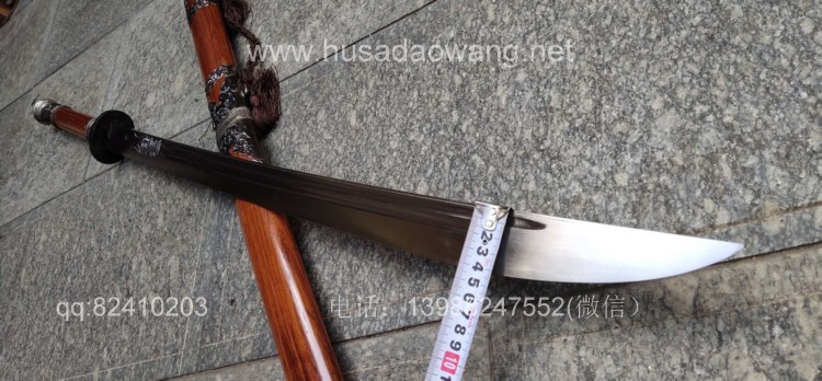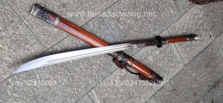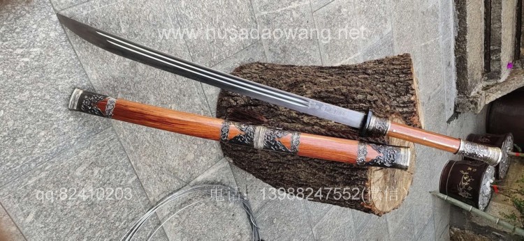 商品简介:此刀由户撒被列为省级非物质文化遗产传人的户撒刀名匠杨茂方全手工锻打而成,刀条精选军用车弹簧板千锤百炼手工锻打后户撒传统配方淬火而成,刃口坚硬刀身较软,如此处理后刀砍硬物不容易崩口,这就是古人说的好刀要刚柔相济!刀条打好后人工冷磨刃口,杜绝直接机器打磨刀刃,以防刃口退火,硬度降低!刀条一体全龙骨制作,结实耐用永不松动!刀体粗锋砍铁不伤,细锋锋利过竹!刀柄刀鞘采用优质红酸枝木手工制作,外包缅银,手感一流,华而不奢,是收藏和实用俱佳的上品刀!