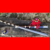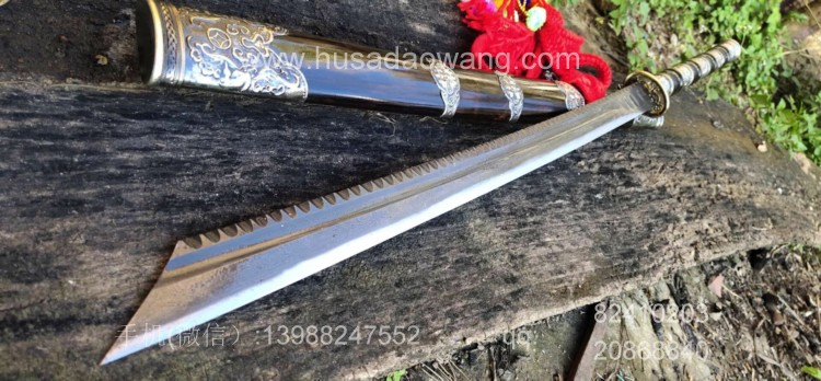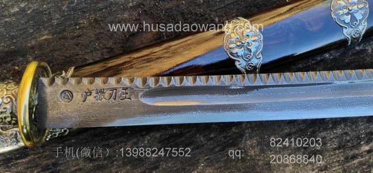 商品简介:刀中之霸,唯有斩马,斩马刀自古以来就是战争中阻止骑兵,用来斩马腿的,也是造型最为霸气的一种,,此款为康熙战刀款,刀条由户撒刀名匠杨茂方精选优质百炼花纹钢全手工锻打而成,层次细腻,纹理美观,经过匠人配方淬火后性能一流,粗锋砍铁不伤细锋轻松过竹,此款做工精美,款式大气,古香古色,民族特色浓郁,刃口三道手工研磨,精细开锋后轻松过竹,配进口黑檀木刀鞘,外包缅银加固,独特美观,是收藏、送礼、镇宅、收藏的绝佳之选!