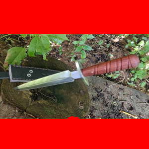 商品简介:此刀由老客户提供原型,特殊定做的一把双刃短匕首,此匕首形态轻盈,但刀型犀利!由户撒优秀刀匠精选优质高碳锰钢全手工锻打刀身,后经过匠人配方淬火而成,刃口坚硬锋利,穿刺效果极佳,手工冷磨刀刃后可轻松剃毛,手柄优选老红酸枝手工制作,有防滑螺旋纹,此刀户外和收藏俱佳,喜欢的朋友可以抓紧定做。