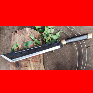 商品简介:此刀为户撒优秀刀匠精选优质高弹锰钢全手工锻打的户外大威力开山刀,一体全龙骨锻造,千锤百炼而后配方淬火而成,刚柔相济,刃口硬度高,斩钉截铁不在话下,导体表面进行黑处理,为煅烧黑面,具备了更好的隐蔽性,同时增加了刀体的防锈功能,刀柄精选优质黑檀,护手隔片为纯铜制作,有力量的朋友可以咨询选购。