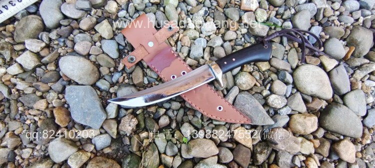商品简介:用坦克销钉全手工锻打的精品高抛光猎刀,传统户撒刀锻打技术,深度淬火而成,刀型采用日式经典猎刀刀型,刃口锋利,刀尖犀利坚固,穿刺切削都表现的极为出色,锋利可刮汗毛,此刀做工精细,匠人对刀条采用高抛光处理,更使得短刀寒光闪闪锋利逼人,刀柄采用优质黑檀木手工制作,手感舒适,是户外不可多得的一款精品猎刀!