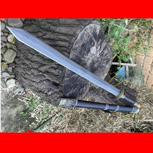 商品简介:此剑为户撒刀迪派传人线乔发采用特硬百炼花纹钢纯手工锻打并配方淬火而成,名匠独到的淬火方法使得整个剑身流畅美观,刚柔相济!一体全龙骨的结构更增加了宝剑的坚固耐用度,认真保养使用,百年不坏!剑身有乔发亲自纯手工雕刻的龙凤花草等民族性吉祥图案,更增加了宝剑的收藏价值,剑鞘剑柄为优质黑檀木手工制作,制作过程根据没把宝剑的剑身薄厚和宽窄量身制作,严丝合缝,此剑为收藏和实用为一体的极品户撒长剑!