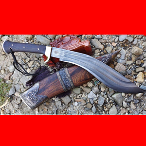 商品简介:此刀为精装大型尼泊尔刀精品系列!钢材选用特硬花纹钢手工锻打配方淬火而成,刀身刚柔相济具有古代冷兵器的一切特征!有所不同的是,这把刀刀身拉有两道大血槽,这样设计既增加了刀的美观程度,而且同时增加了刀体强度和减低配重,不至于在频繁使用中很快使人脱力!超强的一体龙骨设计更使得刀身永不折断,配纯铜护手,刀鞘采用上等黑鸡翅木手工制作,外包缅银,也大大增加了刀的美观性和收藏性!