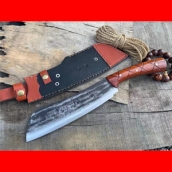 商品简介:此款刀为优秀匠人采用轨道钢手工锻打而成,轨道钢经过手工锻打和淬火后性能极好,斩铁截钉不在话下,此刀长短和配重设计转为户外客户量身定做,刀身颜色为锻打黑色,户外不反光也能增加防锈能力,此款小砍刀为优质促销产品,大家抓紧时间购买!