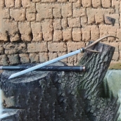 商品简介:此款刀为客户特殊定制的一款极品鹿角拐杖刀,刀条采用户撒精选红钢手工锻打淬火而成,刃口锋利坚硬性能极佳,完全是古代冷兵器的再现,刀身手工雕刻吉祥双龙戏珠图案,栩栩如生体现了浓厚的户撒名族制刀特色,手柄为整根鹿角制作,配纯铜精雕护手,刀鞘为精选黑檀木手工制作,刀鞘上手工雕龙抱柱图案,使得整刀古香古色更显华贵,刀鞘最尾端制作有橡皮垫,触地不磨损,这把拐杖刀非常适合放在家里装饰使用,外在是一把精巧别致的拐杖,抽出来就是一把寒光闪闪的冷兵器!