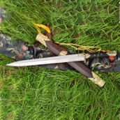 商品简介:这款精品宝剑剑身采用户撒高性能红钢全手工锻造,配方热处理而成,造型为经典四面剑,流畅剑身美观大方,剑身宽厚性能超强,轻松砍铁砍钢筋!剑体一体全龙骨锻造,极为结实耐用,剑柄永不断裂,护手和尾端为实心纯铜手工雕刻而成,非常精细古朴,剑鞘为上等黑檀木外包黄铜件加固古香古色韵味深长!这款剑即可装饰办公室和家里镇宅,又可户外劈砍使用,收藏实用佳品!
