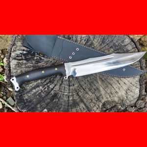 商品简介:此刀为客户根据美国名刀巴斯核弃妇原型设计,但需要稍作改动,这款刀和原款比较去掉了刃口的三道血槽(因担心万一生锈不好打理,客户要求不做三道血槽),这款刀采用户撒优质红钢手工锻打性能一流,配重合理,劈砍十分有力!可以达到刮毛砍铁的性能,此刀精工细作寒光闪闪是一把实用性极强的户外刀,欢迎大家联系定做,微信:13988247552