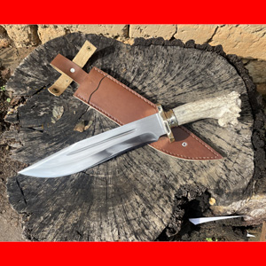 商品简介:这款博依刀采用优质户撒红钢手工锻造,传统配方热处理,性能优良砍铁不伤,这把刀款式按照国外经典鹿角博依刀款式,非常简洁大方,刀柄是用原生鹿角手工制作,古朴 原始 野性,收藏使用把玩皆可!