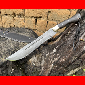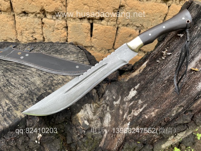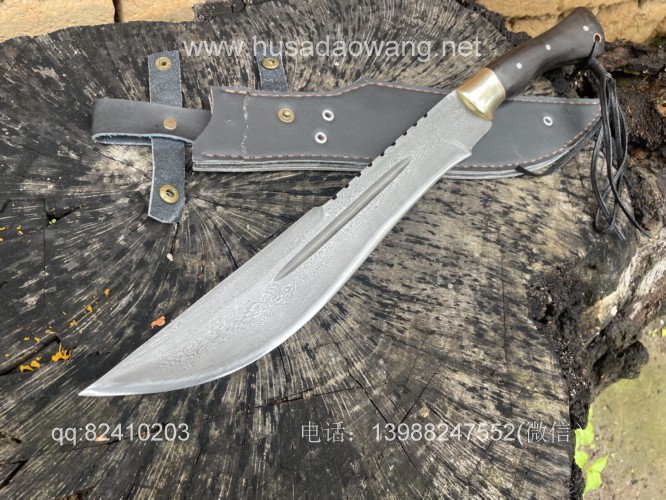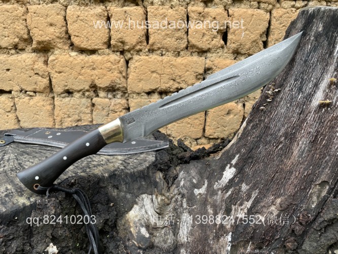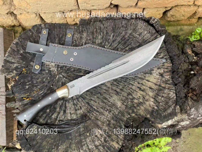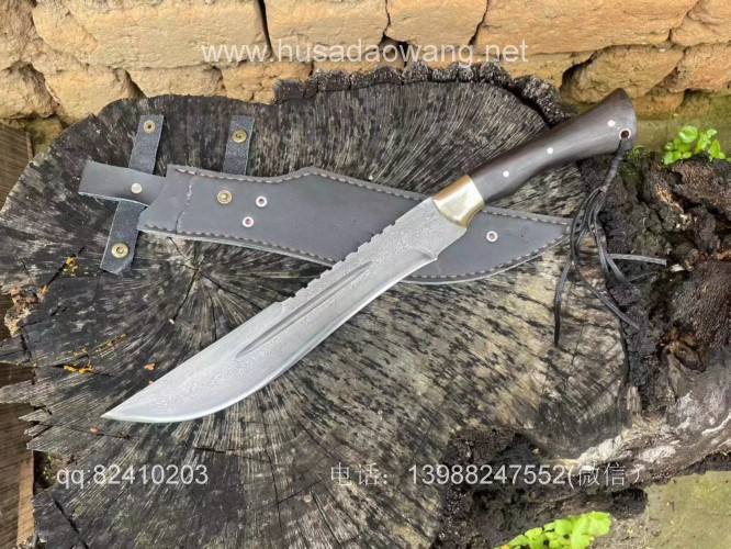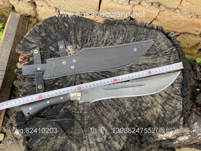 商品简介:这款刀精选特硬百炼花纹钢手工锻打,设计刀头偏大,因此劈砍重心靠前,户外开山相当有力,刀条经过匠人千锤百炼后配方淬火而成,性能极佳,一体全龙骨锻造结实耐用!