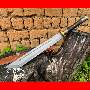 商品简介:这款刀为百炼花纹钢手工锻造的锦衣卫大刀,前宽后窄劈砍力非常巨大,刀刃经过匠人配方淬火后刃口坚硬刀身相对较软以达到刚柔相济的之性能,此刀相对较重,砍断钢筋毫不费力,是一把收藏把玩的好物!
