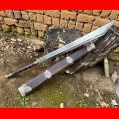商品简介:这款刀是给客户定制的一把超大锦衣卫刀,非常厚重,客户用来锻炼身体和镇宅把玩,军用解放车弹簧板一体全龙骨手工锻造,结实耐用性能超群,螺纹钢筋能轻松砍断,刀鞘刀柄为优质黑酸枝木手工制作,外包缅银,非常值得收藏的一把镇宅宝刀!我们网上给客户做刀快二十年了,有着深厚的制作经验,注重细节,欢迎大家选购。