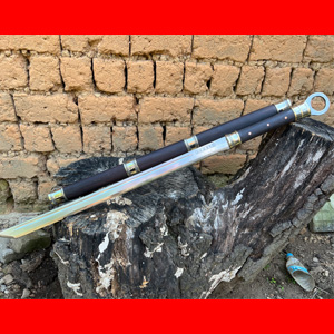 商品简介:名匠杨茂方锻打的一体环首刀,环首刀诞生于我国西汉时期,劈砍和穿刺自己防折断的能力均超过当时的刀剑,在实际战争中占有一席之地,这款环首刀一体龙骨锻打,整体无焊接!刀柄刀鞘为优质黑酸枝手工制作,外包缅银,收藏把玩实用一体的好刀!
