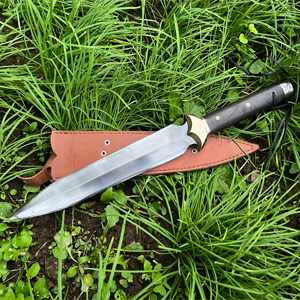商品简介:小短剑采用户撒红钢手工锻造,剑身流畅美观性能极佳,轻松削纸,穿刺能力也非常突出,护手采用实心纯铜手工磨制,非常有特点,这把短剑一经推出非常受客户欢迎,经常接二连三的定制,大家欣赏!