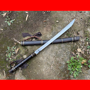户撒刀简介:此刀是户撒刀为物质文化传承人户撒刀王项老赛手工锻打刀条精细加工而成,刀柄刀鞘为优质黑酸枝木手工制作严丝合缝,这把刀分量趁手,配重合理,是一把值得实操演练和把玩收藏的好刀!